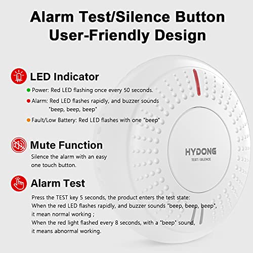 [Comodo pulsante di silenziamento a un tasto]: sebbene l'allarme fumo migliorato abbia un'elevata precisione e abbia notevolmente ridotto i falsi allarmi. Tuttavia, alcune posizioni di installazione errate o la mancanza di pulizia a lungo termine possono anche causare falsi allarmi. Puoi disattivare il fastidioso suono della sveglia tramite il pulsante di disattivazione audio al centro. Puoi scoprire e risolvere il problema dei falsi allarmi leggendo il manuale.