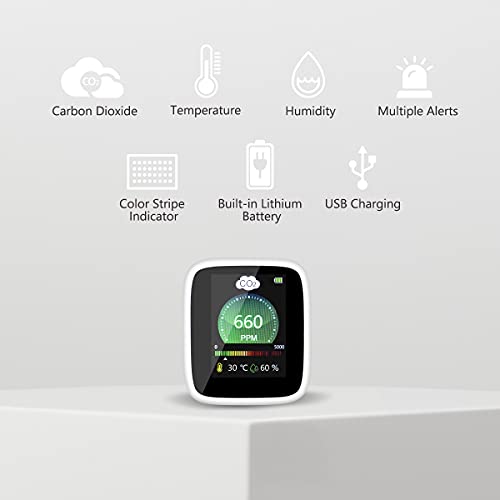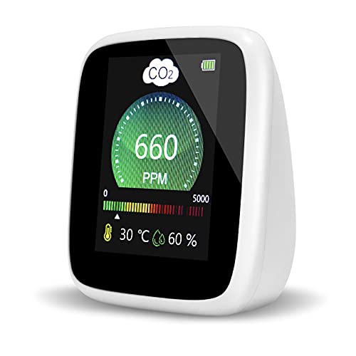 Rilevatori di CO2,Mini Misuratore di Anidride Carbonica 5000ppm,Monitor della Qualità dell'Aria Interna con Termometro e Igrometro per Casa, Ufficio, Auto, Palestra