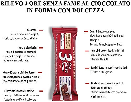 Rilevo 3 ore Senza Fame, barretta al cioccolato extrafondente, semi, cereali soffiati, noci e miele