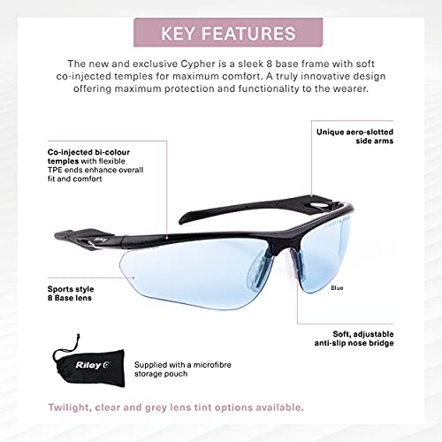 RILEY Cypher - Occhiali protettivi per gli occhi, leggeri e regolabili, con lenti trasparenti anti-appannamento, antigraffio, impugnature antiscivolo e occhiali protettivi UV