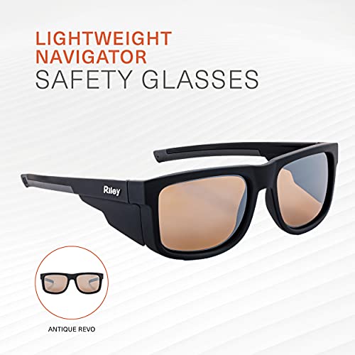 Riley Navigator - Occhiali da sole protettivi alla moda con protezione UV e impatto, occhiali da sole di sicurezza (lenti Revo anticate)