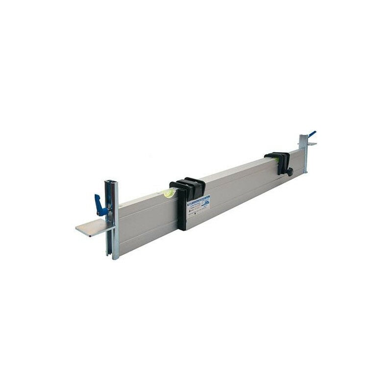 Barra di livellamento regolabile - Barra di livellamento regolabile in continuo per uso esterno - 2 fermi laterali in altezza. regolabili - Struttura a C con livella regolabile - Profilo cavo multicamera in alluminio. anodizzato naturale - La barra di livellamento, variabile in altezza e lunghezza, è particolarmente adatta per il livellamento all'aperto (pietrisco, ghiaia, sabbia) e viene utilizzata principalmente nella costruzione di giardini e sentieri.