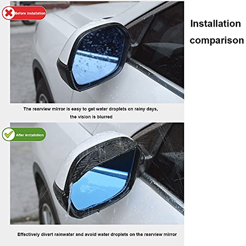 Riloer 2pcs Car Rearview Mirror Rain Shield, PVC Carbon Fiber Pattern Rain Eyebrows for or Blocking Anti Rain Visor Snow Guard, Adhesive Unviersal Accessories