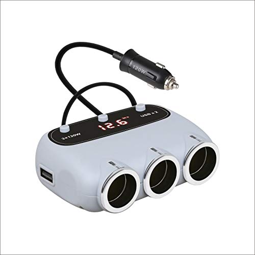 Riloer - Accendisigari da auto multifunzione a 3 vie, con display digitale 12 V-24 V, con adattatore doppio USB, colore: Grigio