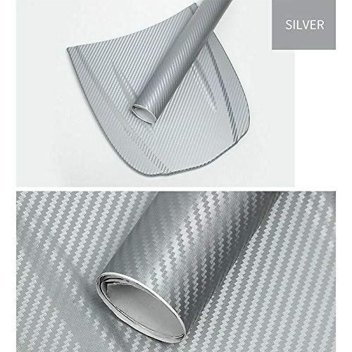 Riloer 3D auto in fibra di carbonio avvolgere il rotolo di vinile, pellicola autoadesiva universale per auto e moto, decorazione fai da te interno/esterno, 1,52 m * 50 cm, argento