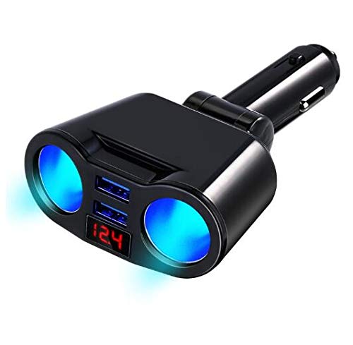 Riloer - Caricabatteria da auto multifunzione con display digitale doppio USB 3.1A, adattatore per caricabatterie da auto, colore: Nero