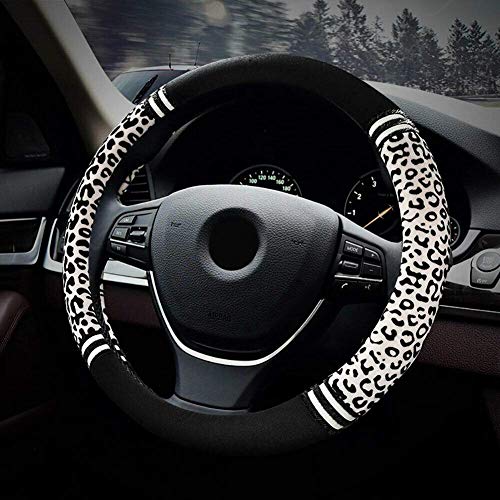 Riloer Coprivolante Universale Antiscivolo per Auto, Copertura Protettiva con Stampa Leopardata per Auto, Camion, SUV, Furgone, Dimensioni 38 cm, Bianco