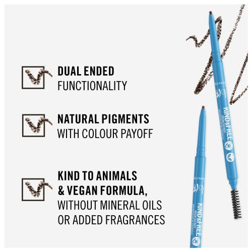 Rimmel London Kind & Free Matita Sopracciglia Brow Definer, Pigmenti naturali, Effetto naturale, Formula vegana - 006 - Espresso, 0.09g