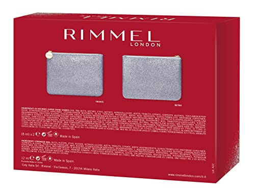 Rimmel London Kit Regalo Donna All That Glitters Collection, Pochette Small Glitterata con Smalto Nail Care Stronger Nail, Smalto 60Seconds 315 Queen of Tarts e Smalto 60Seconds 730 Silver Bullet