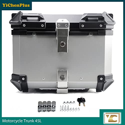 Rimontare il bauletto, bauletto universale in alluminio per moto staffa di montaggio per bagagliaio del motociclo Grande capacità 45L (Argento)