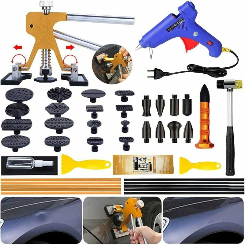 Design professionale: l'estrattore per ammaccature per auto è molto resistente e durevole poiché tutti gli accessori sono stati accuratamente testati e hanno durezza Rockwell. Ampiamente usato: il kit per estrattore per ammaccature senza vernice è ideale per rimuovere ammaccature e grandine dell'auto danno. Lo strumento è ideale per lavorare su camion, auto, moto, frigorifero, porte, ecc. Autentica protezione della vernice: vengono utilizzati acciai temprati ad alto tenore di carbonio e acciai inossidabili standard. Nelle parti della carrozzeria che vengono a contatto con gomma di precisione di alta qualità, può evitare danni alla vernice originale. Facile da usare: il kit di riparazione ammaccature senza vernice è adatto a tutte le persone e ha il vantaggi di una semplice operazione. Non hai più bisogno di spendere tempo e denaro in officina, perché puoi riparare da solo.