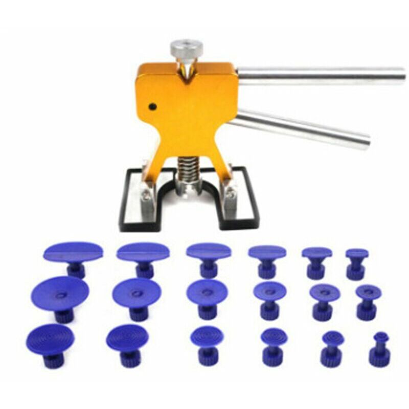 Buon materiale - Realizzato in alluminio e plastica di alta qualità, è più durevole e robusto, resistente all'usura di lunga durata. 【Protezione della vernice originale】l'estrattore per ammaccature d'oro è realizzato in temprato acciaio inossidabile ad alto tenore di carbonio. Nelle parti del corpo a contatto con gomma di precisione di alta qualità, può evitare danni alla vernice originale. 【Facile da riparare】18 schede di diverse dimensioni, forme per molteplici scopi Che tu sia un professionista o un principiante riparazione di ammaccature senza vernice, i dispositivi di rimozione dal design ergonomico ti aiuteranno a rimuovere facilmente le ammaccature. 【Ampio utilizzo】Lo strumento è ideale per lavorare su camion, auto, moto, frigorifero, porte ecc. 【Risparmio di tempo e denaro】 I kit di riparazione ammaccature senza vernice sono convenienti, perché non richiedono molto tempo per la riparazione e non è necessario riparare le ammaccature dell'auto a costi elevati in carrozzeria.