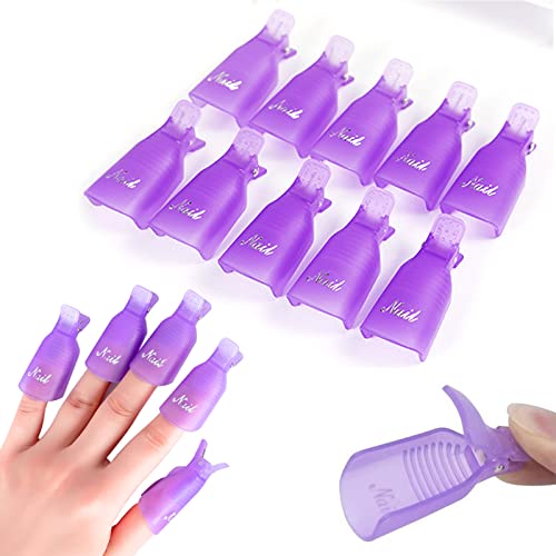 Kit Rimozione Smalto Clip le unghie, 10 pezzi cappuccio per unghie, con 2 pezzi Cuticole Raschietto, Nail Art Unghie per Rimuovere Smalto in Gel, Porpora