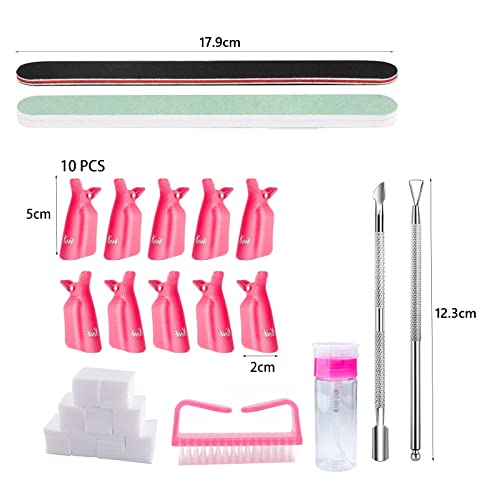 Kit Rimozione Smalto Semipermanente, 10 Clip per Dita, Spingi Cuticole Raschietto, Lime per Unghie, Tamponi di Cotone, Spazzole per Unghie, Flacone per Dispenser per Unghie Gel