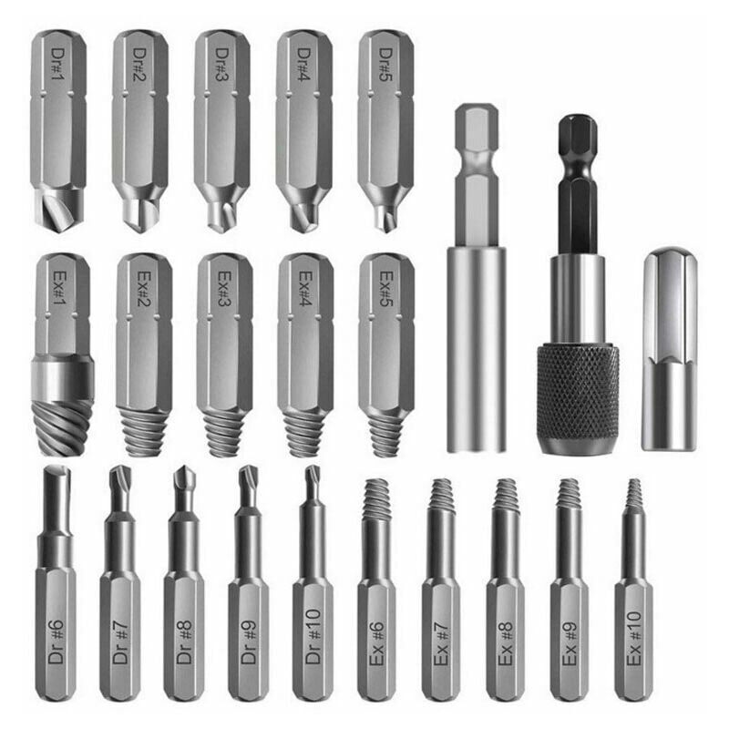 Materiale: l'estrattore a coclea in salamoia è realizzato in acciaio rapido 4241. Viti danneggiate ad alta durezza, resistenti e facili da rimuovere. Dimensioni: l'estrattore per viti include 10 punte da trapano (dimensioni da n. 1 a n. 10), 10 estrattori (dimensioni da n. ch offre una specifica del modello, per aiutarti a rimuovere le varie dimensioni (1-12 mm) di viti o bulloni danneggiati. Estensione: portapunte magnetico Con collare regolabile, può assorbire l'elevata coppia dei nuovi avvitatori ad impulsi. Il portapunte a cambio rapido manterrà il trapano in posizione se il trapano non era abbastanza lungo da raggiungere ciò che stavi cercando di sfondare. Ampiamente usato: posizione del foro ad alta precisione, bulloni danneggiati e rimozione di viti ideale, adatto per punte da trapano più comuni e varie dimensioni di viti o bulloni, come viti a brugola, viti per macchine, viti per macchine, viti per legno, viti esagonali, viti autofilettanti. Nota: è meglio installarli sul
