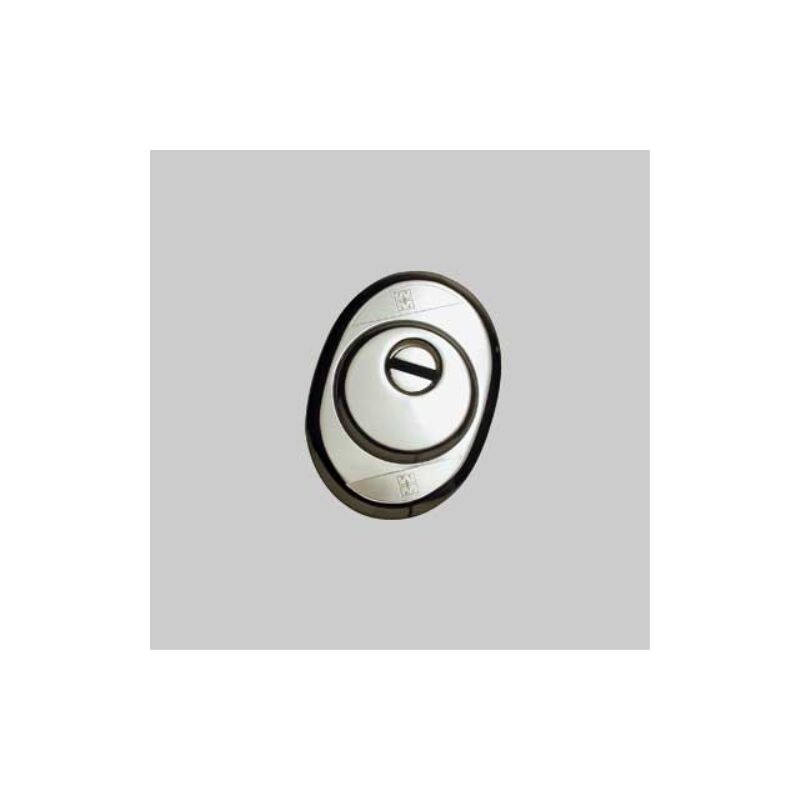 Mm.50 con mostrina di protezione incorporata e rondella cromata con feritoia chiave. Protezione su entrata chiave mm.6. Rinforzo per cilindro europeo ottone MOTTURA Serrature ad applicare