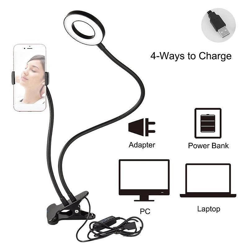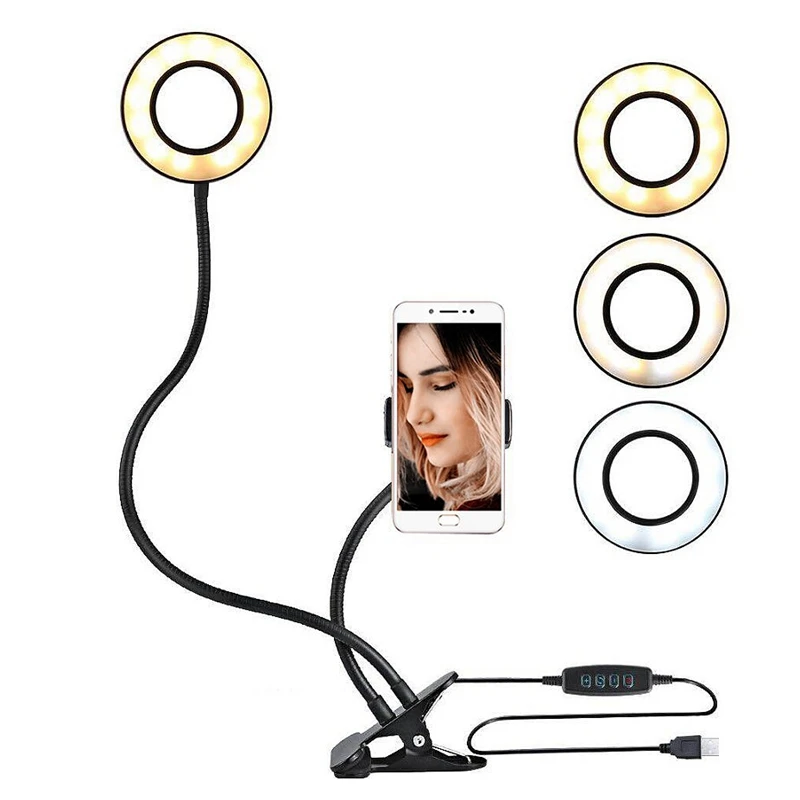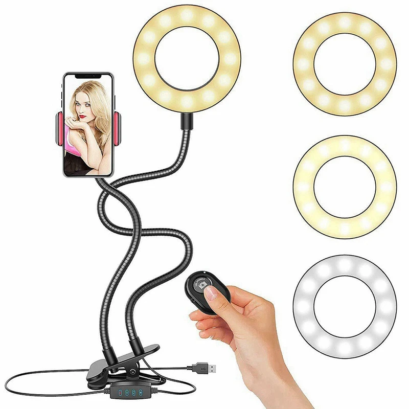LED Ring Light, Bluetooth Live 9cm Fill Light and Mobile Phone Holder USB Desktop Clip for Video Live