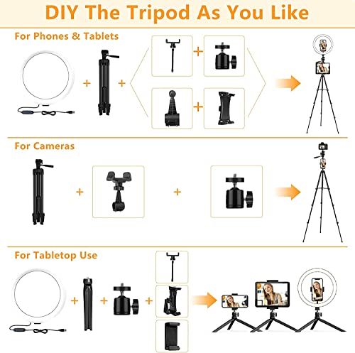 12" Ring Light, PEYOU Luce per Selfie con [Supporto Tablet e Supporto Cellulare], 62" Luce ad Anello con Stabile Treppiede Fotocamera, 3 Modalità e 10 Luminosità, per Tik Tok/Youtube/Trucco/Selfie