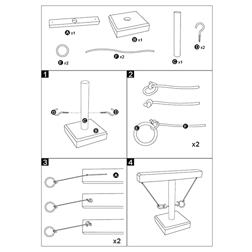 【Facile da Montare】: Il gioco del lancio degli anelli è facile da assemblare, le corde, i passanti e i ganci sono preassemblati, basta inserire i perni nella parte inferiore, senza bisogno di viti.