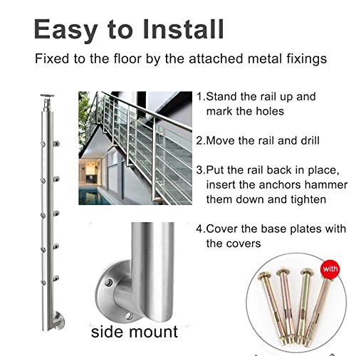 【Acciaio inossidabile】: il corrimano è realizzato in acciaio inossidabile 304, antiruggine, aspetto liscio, facile da pulire. Eccellente resistenza all'acqua e alla corrosione, durevole per applicazioni esterne a lungo termine. Supporta fino a 150 kg (330 libbre).