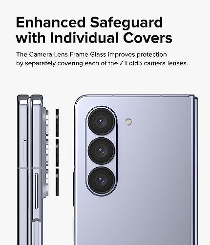 Ringke Camera Lens Frame Glass Compatible con Samsung Galaxy Z Fold 5 5G, Protezione Obiettivi Fotocamera Copertura in Vetro Temperato Telaio in Lega di Alluminio - Black Nero