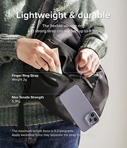 Ringke Cinturino ad Anello Dito (2 Pezzi) per Custodie Cellulare, Chiavi, Fotocamere, Maneggevole Silicone Antiscivolo Sottile Cellulari Supporto - Black & Lavender Gray