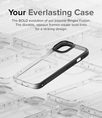 Ringke Fusion Bold Compatibile con Cover iPhone 15 Plus, Paraurti Cornice Audace Antiurto Anti-Ingiallimento con Ottimo Grip e Custodia Posteriore Rigida PC Trasparente - Black Nero