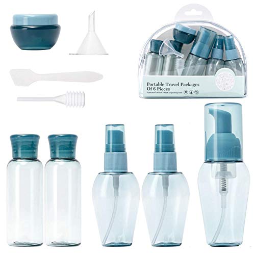 RinTalen Bottiglie da viaggio ZKSM, Set di 6 contenitori vuoti per cosmetici con etichetta, imbuto, cannuccia per liquidi, emulsione acqua(blu, trasparente)