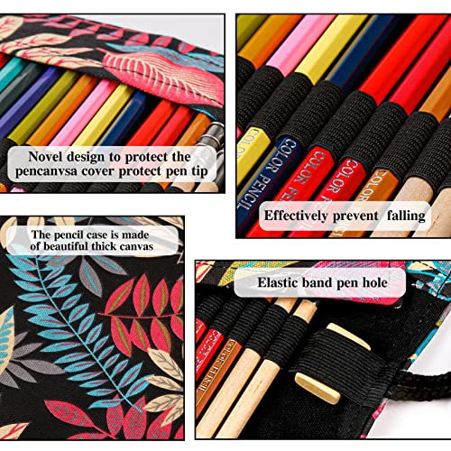 RiongXi Astuccio per matite Custodia per matite, Astuccio,Conservazione per matite colorate per dipingere scrivere (Tela matita wrap 72 fori x 1,Matita estensori x 2)