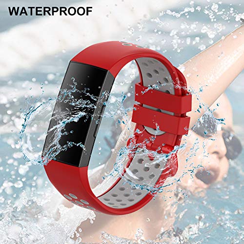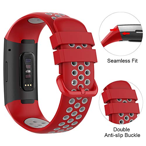 RIOROO Compatibile per Fitbit Charge 3/Charge 4/Charge 4 SE Cinturino, Braccialetti in Silicone Morbido e Traspirante per Donna Uomo Sportivo Cinturini di Ricambio Rosso Grigio