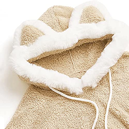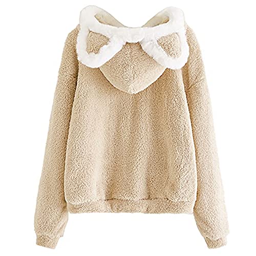 Riou Giacca Peluche con Cappello con Orecchie da Gatto Carino Hoodie da Donna Sweatshirt a Maniche Lunghe Morbido Caldo Felpa Inverno in Pile