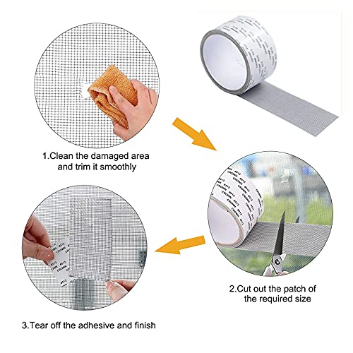 Riparare Zanzariere Nastro Adesivo Nastro Adesivo in Fibra Di Vetro Per Finestre Nastro per Riparazioni Schermo Patch per Riparazione di Finestre e Porte Anti-Zanzara Insetto, 5 x 200CM (Grigio)