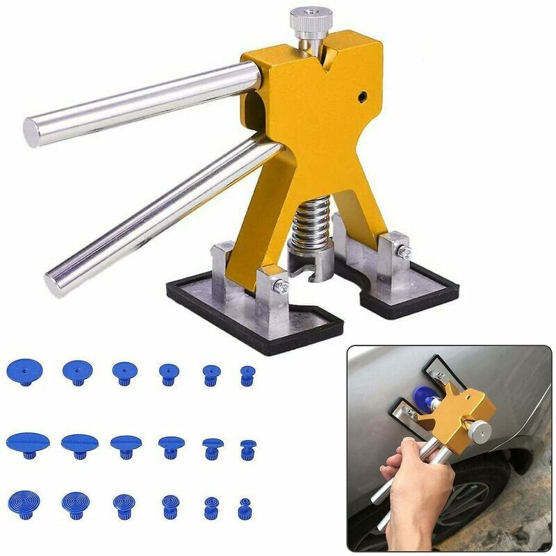 Materiale: acciaio inossidabile + plastica Peso: 18 pezzi: 350 g Caratteristiche del prodotto: 1. Corpo in alluminio 2. Manopola di regolazione in acciaio inossidabile 3. Dadi/bulloni/perno girevole/morsetti a E di fissaggio in acciaio inossidabile 4. Una vite nella parte superiore del sollevatore per ammaccature viene utilizzata per regolare l'altezza centrale del sollevatore per ammaccature. 5. Con il processo di ossidazione della sabbiatura, la sensazione di consistenza liscia e l'aspetto eccezionale, il prodotto è molto resistente e durevole. 6. Nella parte inferiore del sollevatore di ammaccature c'è del silicone, non una normale gomma, che è molto morbida e non dannosa per la pittura ad olio e può essere abbattuta. Dent Lifter Descrizione del prodotto: Facile da controllare: il fai-da-te può rimuovere l'ammaccatura da solo, adatto a chiunque possa operare, presenta i vantaggi di un funzionamento semplice, ripara l'ammaccatura direttamente per te . I piedini imbottiti aggiungono