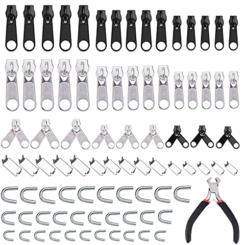 Kit Riparazione Cerniere Lampo 85 Pezzi Sostituzione Cerniera Lampo Slider di Ricambio con Cerniera Cerniera Sostituzione Metallo Cursori Cerniera Lampo Zipper Universali per Borse Giacche Bagagli
