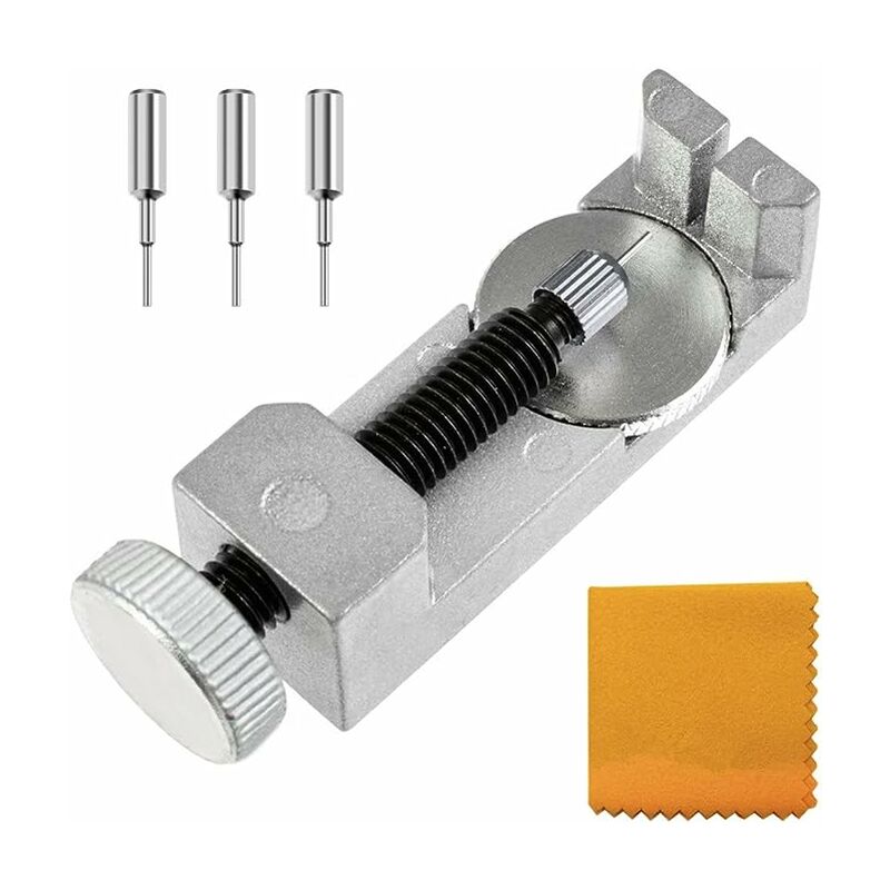 Resistente: robusto dispositivo di rimozione del cinturino interamente in metallo. Facile da usare: regola il cinturino dell'orologio da solo con questo piccolo strumento in modo efficace senza dimenarti. Compatibile con diverse dimensioni: quattro perni aggiuntivi e una base regolabile consentono tutti i tipi di strisce. Il pacchetto include: 1 x dispositivo di rimozione della base dell'orologio, 6 x spilli, 1 * panno per la pulizia