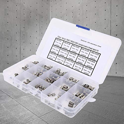 Kit di riparazione filettatura 300 pezzi in acciaio inossidabile M4x0,7 M5x0,8 M6x1 Strumento di riparazione filettatura metrica per macchine utensili