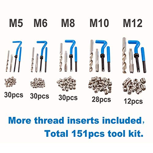 N/O - Kit di riparazione per filettature con inserti elicoidali, 151, M5, M6, M10, M1, M1, M12