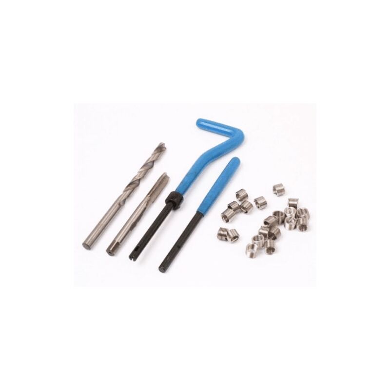KIT RIPARAZIONE FILETTI FILETTATURE ELICOIDI HELICOIL VCOIL M10x1.5 MASCHIO 961sa Questo kit contiene tutti gli utensili necessari alla riparazione di filettature femmina danneggiate in acciaio, ghisa e alluminio Gli inserti in acciaio elastico rafforzano la filettatura Il kit include maschiatore HSS, punta da trapano, guida di serpentina, estrattore linguetta e inserti M10X1.5