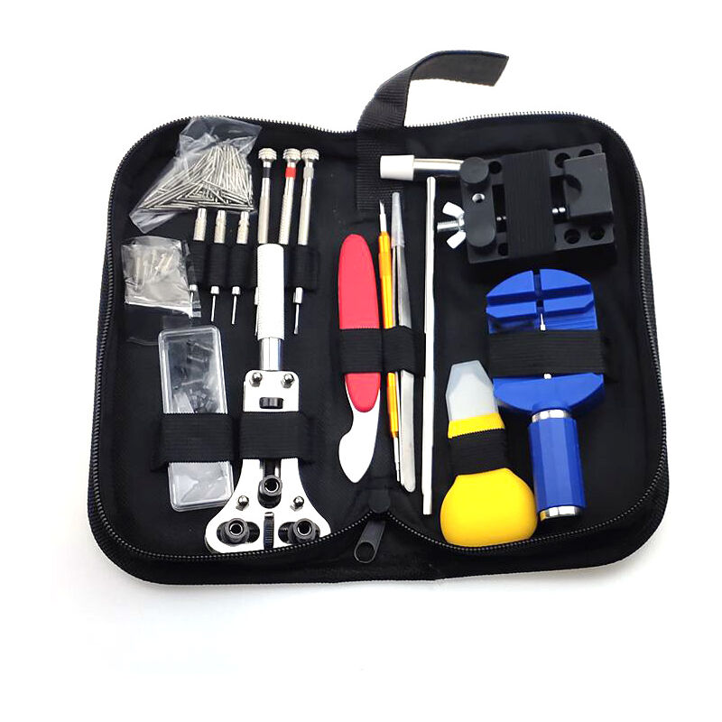 Tipo: strumento di riparazione Presentazione dello strumento: 1. Un supporto per orologio (non può essere utilizzato perché l'orologio è piccolo e non può essere stretto a mano. È facile da usare dopo aver serrato il supporto dell'orologio) 2. Lo strumento per cintura in acciaio è facile da rimuovere dalla cintura in acciaio (diversi lotti di colori, blu e nero casuali) 3. Lo scorpione è di buona qualità. Le piccole parti della clip con freccia scorpione sono più pratiche. 4. Set doppia testa in lega di alluminio di alta qualità (la testa rotonda è adatta per smontare il cinturino con fibbia a farfalla e il cinturino a forma di V) 5. Cover gialla (usata per sollevare la cover posteriore dell'orologio e aprire la cover posteriore per una facile manutenzione o sostituzione della batteria) 6. Apertura a tre griffe (sostituire il coperchio posteriore rotante con 18 denti in acciaio) (i denti in acciaio sono scatole di plastica, che si danneggiano da sole e non supportano il contraccolpo.)