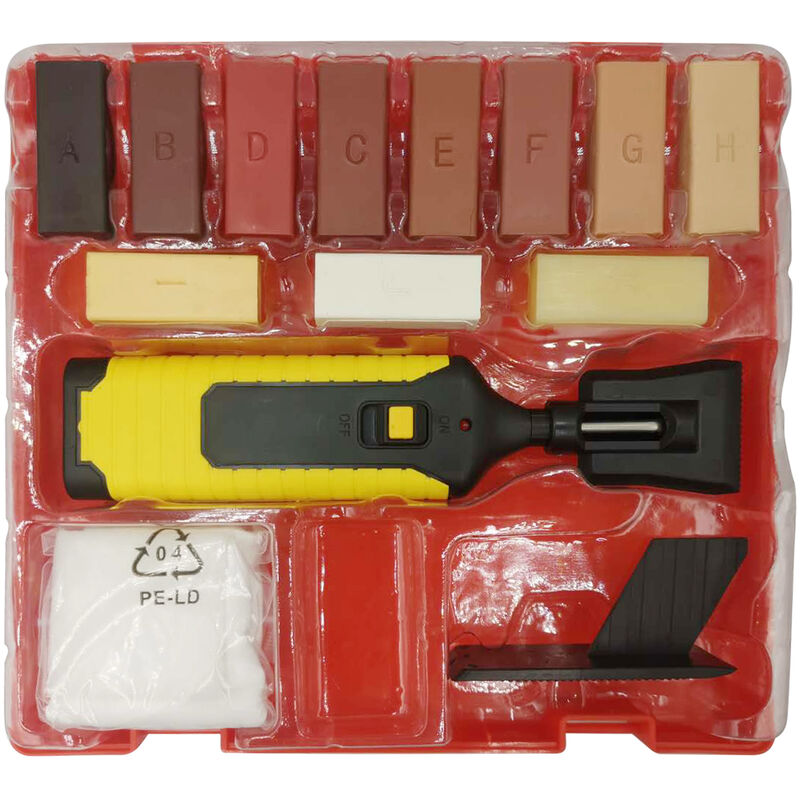 Realizzato in materiale di alta qualita, il set di riparazione e pratico, facile da usare e da usare, un'ampia gamma di applicazioni e ha una lunga durata. Caratteristiche: Consigliato per riparare piccoli graffi su pavimenti in laminato, piani di lavoro, mobili, armadi, travi, telai di finestre, ecc. Perfetto per i devoti del fai da te e per gli utenti piu avanzati. Il kit comprende una gamma versatile di materiali che possono essere utilizzati per riparare pavimenti e superfici in laminato nei colori piu diffusi. Puo essere utilizzato anche per riparare cucine e altri piani di lavoro in laminato decorativo e persino mobili in legno. Graffi o danni leggeri possono essere riparati senza sforzo. Stick di riempimento facili da usare. Ricrea semplicemente il colore delle tue tavole danneggiate mescolando gli 11 blocchi di cera. Ideale per l'uso in casa, roulotte, posto di lavoro, scuola, hotel, casa di cura, ufficio, barca, ecc. Specifiche: Materiale: ABS + resina Batteria: batteria 2 *