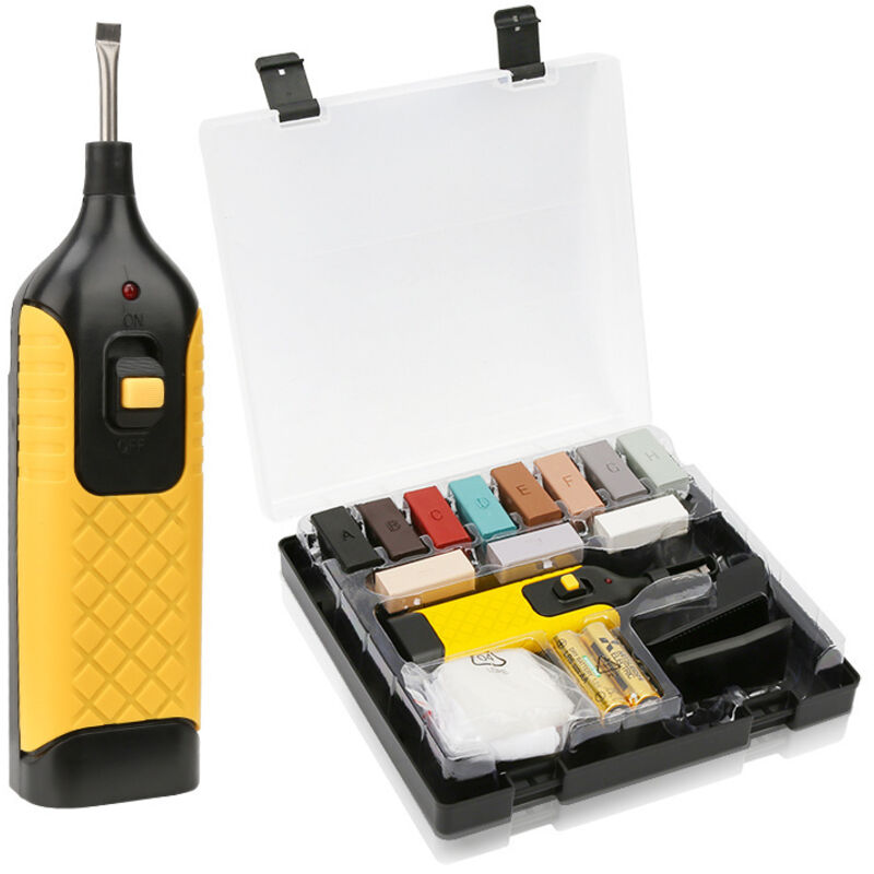Un pratico assistente per correggere i danni minori alle superfici delle piastrelle, in grado di correggere immediatamente piccole ammaccature, graffi e rientranze. Con un semplice utilizzo, le aree danneggiate e i fori della superficie scompaiono! Il kit per la riparazione delle piastrelle viene fornito in una pratica scatola che contiene tutto il necessario. È ideale per riparare piastrelle di pavimenti, bagni, piastrelle del bagno, ceramiche in pietra naturale e gres. È anche possibile riparare aree danneggiate su pietra naturale, marmo e cemento. Facile applicazione: il pratico scaldacera riscalda la cera dura e la rende liquida. Riempire le aree danneggiate con la cera e lasciare indurire. Quindi utilizzare una spatola per rimuovere le irregolarità e un tampone abrasivo per le finiture fini. Risultati perfetti: è disponibile un'ampia scelta di colori e, mescolando le tinte, si possono creare sfumature personalizzate. Dopo l'applicazione, ammaccature e graffi sono appena visibili
