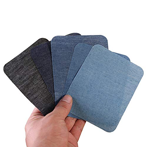 Riparazione Toppe Denim, 25 Pezzi Patch Tessuto Denim, Abbigliamento Toppe Riparazione Denim, Kit Toppe Denim, Patch Stoffa Ovale, Ovale, Quadrato, per Abiti Vari Diy, Zaini, Cappelli, Borse, 5 Colori