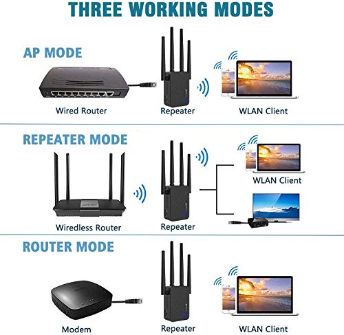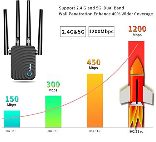 Ripetitore WiFi Wireless,Amplificatore Segnale Wi-Fi Range Extender 1200 Mbit/s 5,8 GHz & 300 Mbps,2,4 GHz WiFi Repeater Portatile,WiFi Range Extender,ripetitore/modalità Access Point compatibile