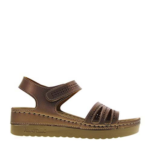 Riposella 00011 Sandali Sportivi Donna Pelle Sintetica Bronzo Tacco Zeppa 5Cm Suola Gomma