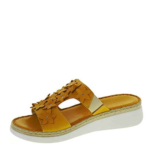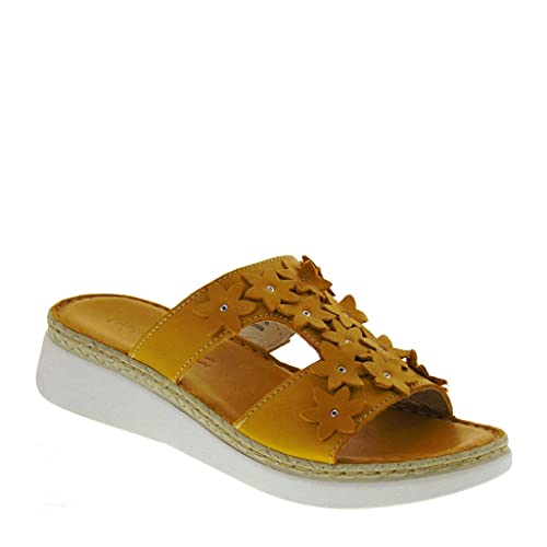 Riposella 16209 Ciabatte Sandali Donna Pelle Giallo Tacco A Zeppa 5Cm Fiori (38 EU)