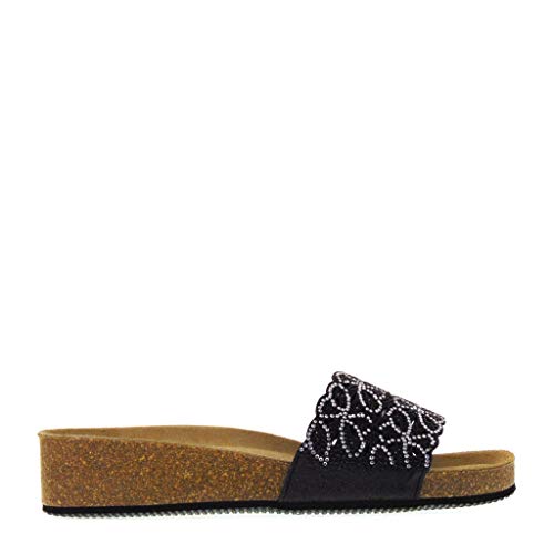 Riposella Natural 19633 Ciabatte BIO Sughero ESTIVE Strass Nero E Argento