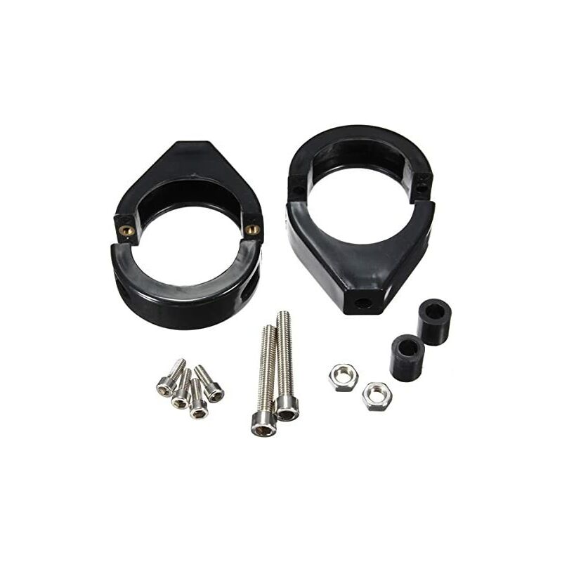 Utilizzato per riposizionare gli indicatori di direzione anteriori Per il montaggio di Harley Davidson Softail e altri modelli con steli forcella da 41 mm. Coppia fascette nere per steli forcella forcella da 41 mm < p>Si consiglia l'installazione professionale Materiale: plastica ABS di alta qualità.