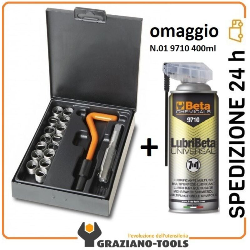 Set ripristino filettature candela danneggiate m14x1,25 mm. altezza elicoidi: 8,40 - 12,40 - 16,40 mm ( 5 pz per misura ) Passo: M14x1,25 Materiale: Acciaio inossidabile Utilizzo: Ripristino filettature candela danneggiata Contenuto serie: Pezzi 5 x beta 437c h 8,40 - 12,40 - 16,40 Pezzi per confezione: 15