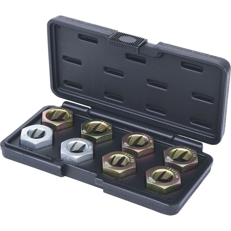 Per ravvivare e pulire le filettature esterne Attacco direttamente sull'esagono esterno senza necessità del girafiliere 8 misure di passo fine tra le più utilizzate Codice cromatico per la differenziazione tra metrico e pollici Acciaio speciale per utensili Campi di applicazione: Filettature degli alberi di trasmissione, bulloni ruota, ecc., su veicoli commerciali / furgoni e mezzi pesanti Pezzi in set 8 Peso del tessuto 420 Imballaggio Kunststoffkoffer, extra robust Dimensioni dell'imballaggio 1 Materiale1 Spezial-Werkzeugstahl