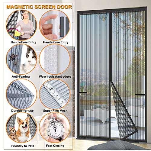 【Chiusura Automatica】-Più di 21 coppie di potenti magneti sono integrati al centro delle zanzariera porta, quando attraversi la porta, la zanzariera magnetica porta si chiude rapidamente e silenziosamente dietro di te, senza spazi vuoti, a mani libere, adatta ai bambini e animali domestici, non spaventeranno i tuoi animali domestici. Non preoccuparti che il tuo animale domestico non possa aprire la zanzariera.